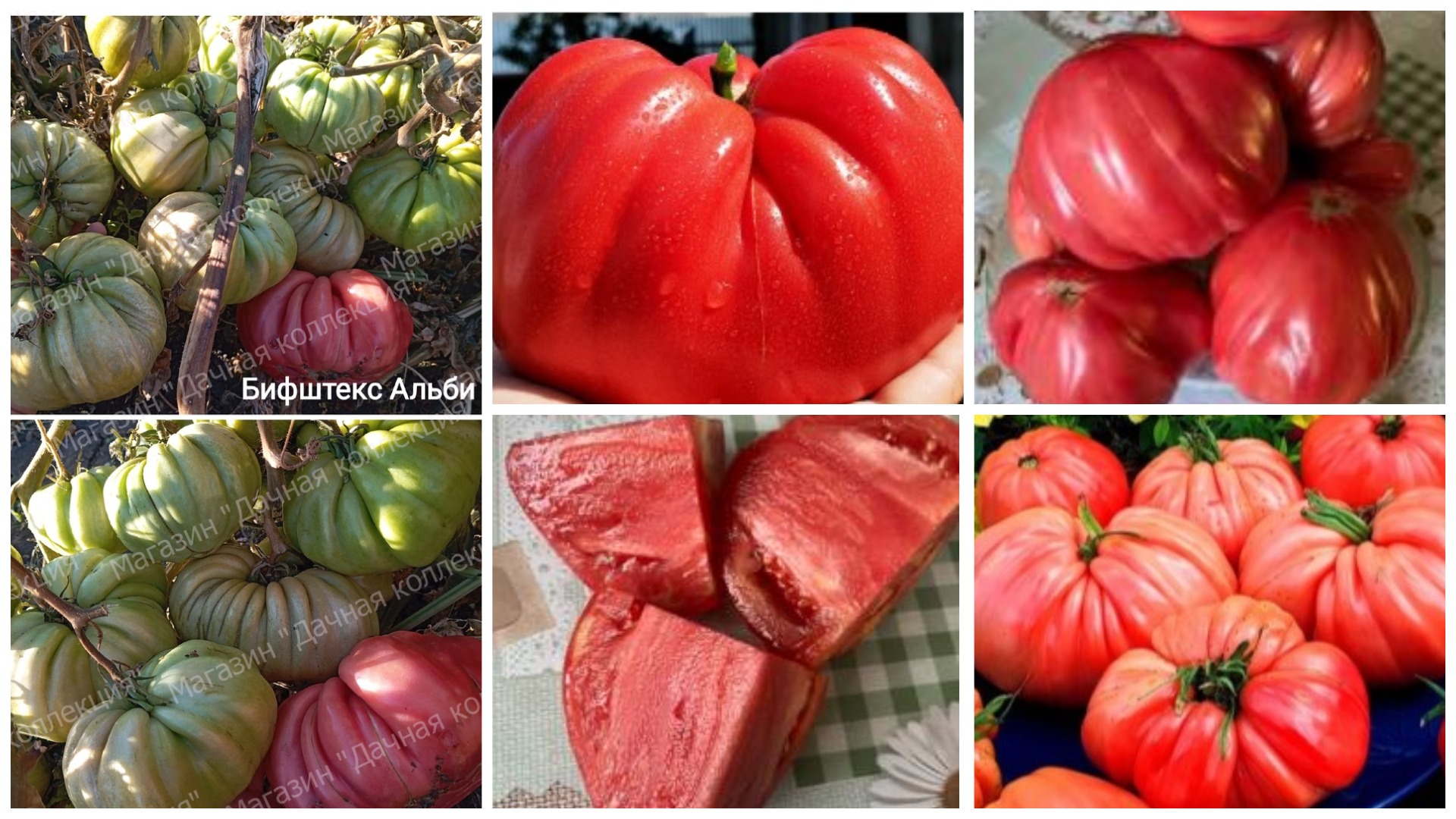 Формировать Бифштекс Альби нужно с обязательной подвязкой, в один-два стебля, иначе растение просто сломается под тяжестью плодов. О томатах сорта Бифштекс Альби хотим сказать особо – они огромные, пухло-сердцевидные, с небольшой ребристостью, весом до килограмма!