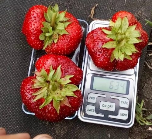 Первые ягодки могут достигать веса 100 г и даже более. Действительно, как среднее яблоко! Далее, ягоды могут немного мельчать, но не менее 40-50 г!
