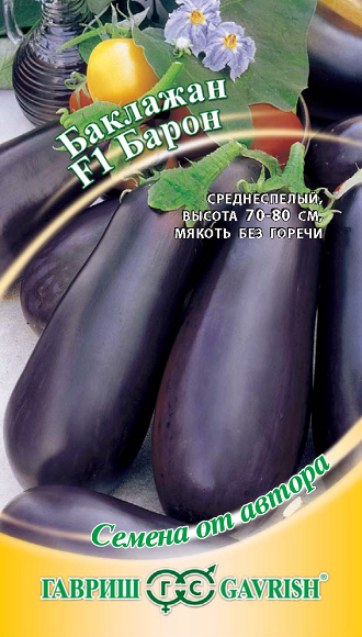 Среднеспелый (100 дней от всходов до плодоношения) среднерослый (70-80 см) гибрид, рекомендован для пленочных теплиц. Посев на рассаду- в конце февраля. Пикировка производится в фазе семядолей. В теплицу рассаду высаживают в конце мая. Формировка: удаление всех боковых побегов и листьев до первой развилки. Плоды цилиндрической формы, длиной 16-22 см, диаметром 6-8 см, темно-фиолетовой окраски с глянцевой поверхностью, массой 300-350 г. Мякоть средней плотности, желтовато-белая, без горечи. Схема посадки: 40х60 см. Урожайность одного растения 2,8-3,1 кг.