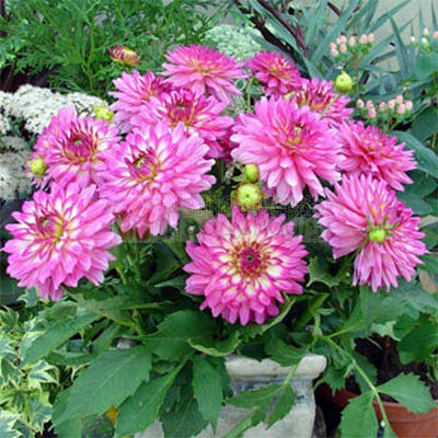– еще одна группа популярных в последнее время низкорослых георгин. Цветок у георгин Гелери полностью махровый, диаметром 6-10 см, имеет плоские лепестки (язычковые цветки), слегка закрученные и отогнутые к стеблю, что делает его необыкновенно пышным. Высота георгин Гелери не превышает 30-35 см. Они не требуют дополнительных опор, цветут продолжительно и очень обильно. Георгины Гелери отлично подходят для переднего края бордюра, а также в качестве контейнерных посадок для украшения террас, балконов и веранд.