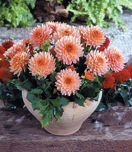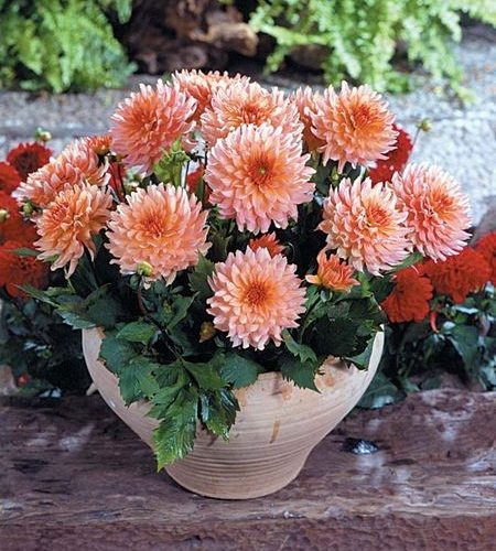 – еще одна группа популярных в последнее время низкорослых георгин. Цветок у георгин Гелери полностью махровый, диаметром 6-10 см, имеет плоские лепестки (язычковые цветки), слегка закрученные и отогнутые к стеблю, что делает его необыкновенно пышным. Высота георгин Гелери не превышает 30-35 см. Они не требуют дополнительных опор, цветут продолжительно и очень обильно. Георгины Гелери отлично подходят для переднего края бордюра, а также в качестве контейнерных посадок для украшения террас, балконов и веранд.