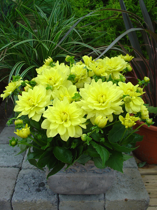 – еще одна группа популярных в последнее время низкорослых георгин. Цветок у георгин Гелери полностью махровый, диаметром 6-10 см, имеет плоские лепестки (язычковые цветки), слегка закрученные и отогнутые к стеблю, что делает его необыкновенно пышным. Высота георгин Гелери не превышает 30-35 см. Они не требуют дополнительных опор, цветут продолжительно и очень обильно. Георгины Гелери отлично подходят для переднего края бордюра, а также в качестве контейнерных посадок для украшения террас, балконов и веранд.