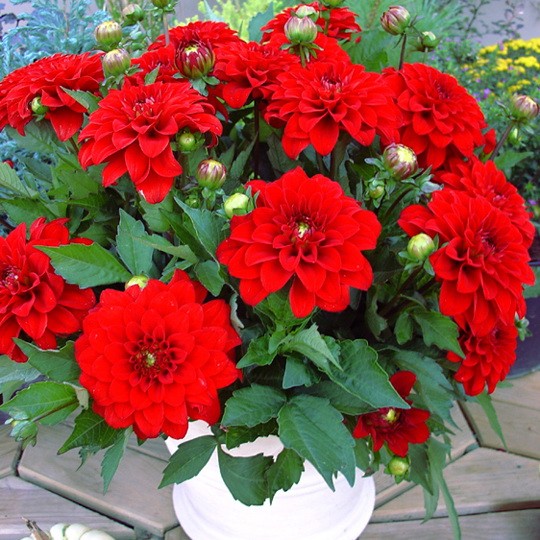 – еще одна группа популярных в последнее время низкорослых георгин. Цветок у георгин Гелери полностью махровый, диаметром 6-10 см, имеет плоские лепестки (язычковые цветки), слегка закрученные и отогнутые к стеблю, что делает его необыкновенно пышным. Высота георгин Гелери не превышает 30-35 см. Они не требуют дополнительных опор, цветут продолжительно и очень обильно. Георгины Гелери отлично подходят для переднего края бордюра, а также в качестве контейнерных посадок для украшения террас, балконов и веранд.