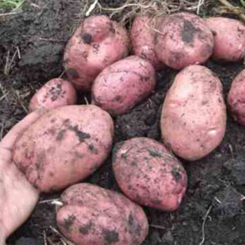 Масса одного удлиненного клубня овальной формы составляет 104-132 г. Окраска кожуры красная, а мякоть под ней – светло -кремовая. Структура кожуры гладкая. Глубина глазков мелкая.