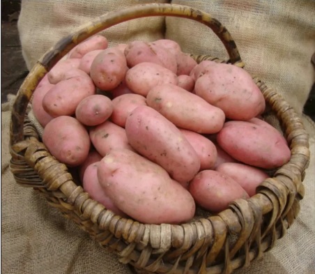 Клубни красные с белой мякотью. Вкус отличный.