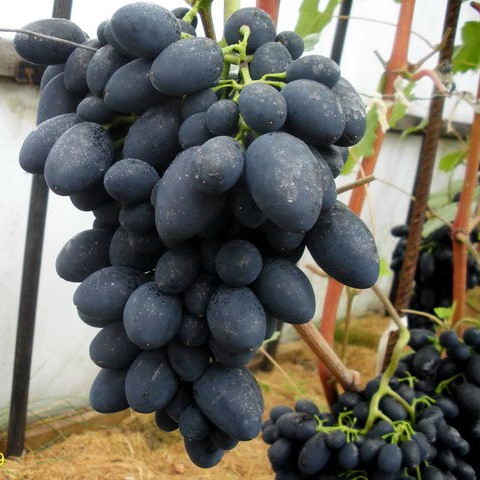 Сверхранний столовый сорт винограда, с повышенной устойчивостью к болезням. От начала распускания почек до зрелости ягод проходит 110-118 дней. Кусты винограда сильнорослые. Масса грозди 400-600 г, отдельные до 1,5 кг. Ягода крупная 31 x 19 мм, 6-8 г, темно-фиолетовая. Вкус простой, но благодаря плотной мякоти, небольшому количеству легко отделяемых семян, кожице не ощущаемой при еде — вкусовые качества отличные. Грозди могут долго висеть на кустах без потери вкусовых качеств. Урожайность высокая. Устойчив к милдью , к морозу -22°С. 0чень достойный сорт винограда для приусадебного виноградарства.