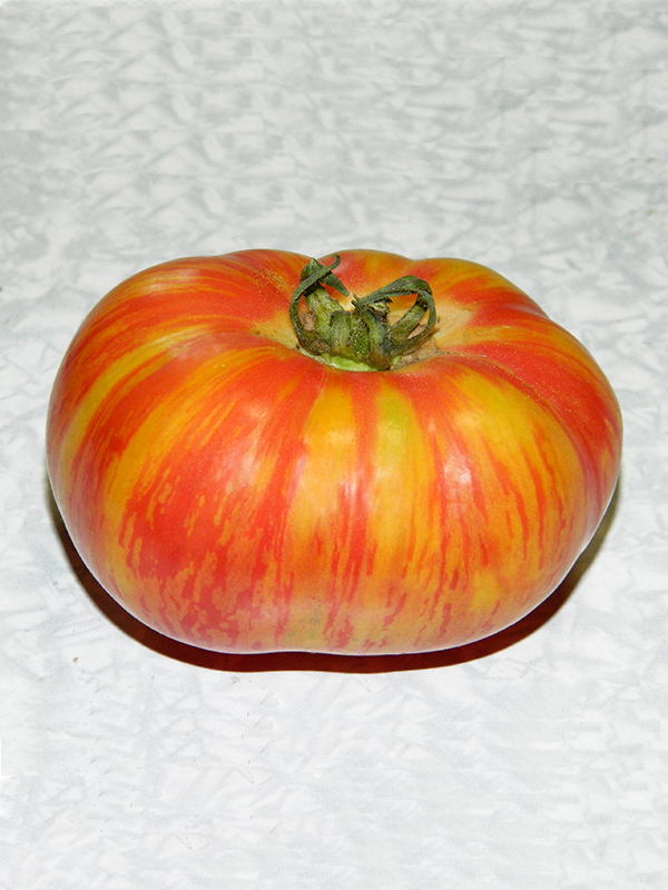 Сорт с необычайно красивыми плодами: ярко-оранжевыми с красными полосами. Происхождение сорта: США. Срок созревания: 110-118 дней. Тип куста: индетерминантный. Высота растения: 150 см. Цвет плода: оранжевый с красными полосами. Форма плода: бифштекс. Вес плода: 280-320 г. Формировка: в 1-2 стебля.