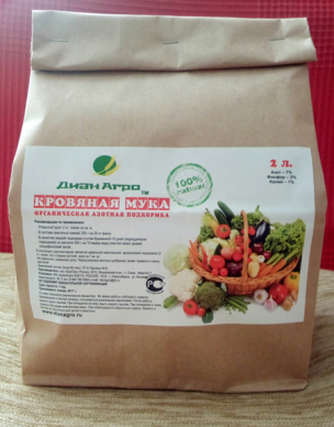 • Кровяная мука содержит около 13 % азота и является отличным источником этого основного питательного элемента. Она способствует нарастанию листьев, росту и развитию растений.