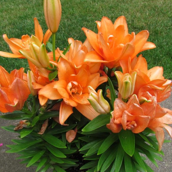 Ярко — оранжевый гибрид лилии из серии Тайни. Ароматный цветок — редкое качество для азиатских гибридов лилий. Время цветения конец июля. Форма соцветия: цветы чашевидные с широкими лепестками, направленные вверх.