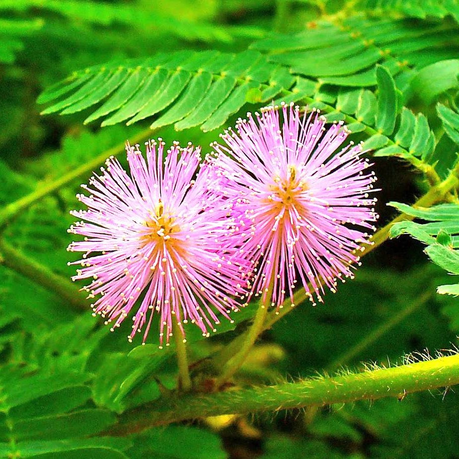 Красивоцветущее, декоративно-лиственное, горшечное растение семейства бобовых. У мимозы стыдливой лёгкая перистая листва и розовые округлые пушистые цветки. Если вы нежно прикоснётесь к листьям, похожими на листья папоротника, они мгновенно сложатся, прижавшись к черешку, который наклонится вниз. Если растение не трогать, то через некоторое время листочки постепенно раскроются и растение примет свой прежний вид. Именно эта потрясающая реакция листьев и дала растению название. Мимозу очень легко размножать семенами: неглубоко посадите семена в смесь из равных частей земли, торфа и песка, почва всегда должна быть влажноватой, поддерживайте температуру на уровне 18-20 °C и проветривайте помещение. Через 4-6 недель появятся всходы. УХОД: По мере того, как корни начинают вылезать из дренажных отверстий, пересаживайте мимозу весной, каждый раз увеличивая размер горшка, пока не дойдёте до горшка диаметром 15 см. Затем каждый год заменяйте поверхностный слой земли более свежим. Растение хорошо переносит жару, но только в хорошо проветриваемом помещении. Держите горшки в очень светлом месте, можно даже на солнце, но не в самые жаркие часы. Поливайте так, чтобы почва всегда была влажной, каждые 2 недели добавляйте в воду для полива жидкое удобрение. Осенью и зимой мимоза должна стоять на самом солнечном месте, но не на сквозняке, температура не должна опускаться ниже 13С. Время от времени поливайте так, чтобы почва высыхала между поливами.