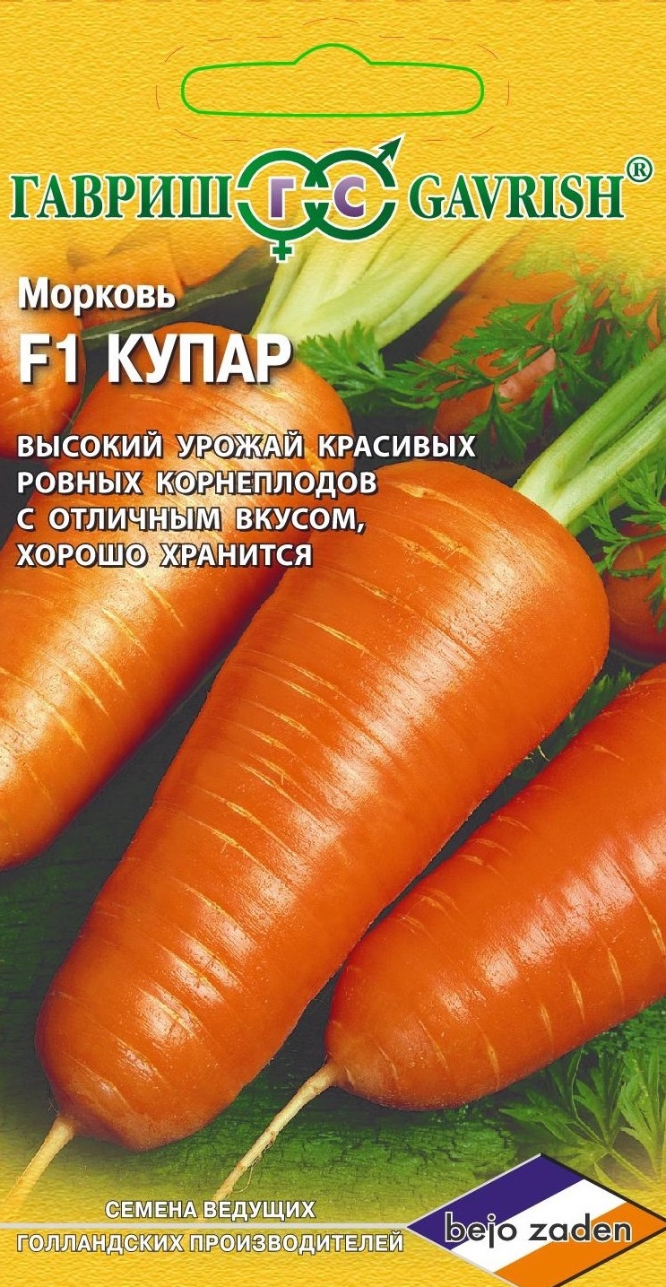 Среднепоздний (90-130 дней от всходов до технической спелости) очень урожайный гибрид. Рекомендуется для употребления в свежем виде и длительного хранения. Розетка листьев прямостоячая. Корнеплод оранжевый, короткий или среднего размера, веретеновидный с слегка заостренным кончиком (сортотип Шантенэ), длиной 17-19 см, массой 140-170 г. Мякоть сочная, деликатесная. Гибрид очень урожайный, ценится за одинаковые по размеру, товарные корнеплоды, устойчивые к растрескиванию. Урожайность 2,7-4,7 (до 5,5) кг/м2. Посев семян в грунт производится в конце апреля – начале мая на глубину 1 см, расстояние между рядками 18-20 см. Подросшие всходы прореживают, оставляя между растениями по 5-6 см.