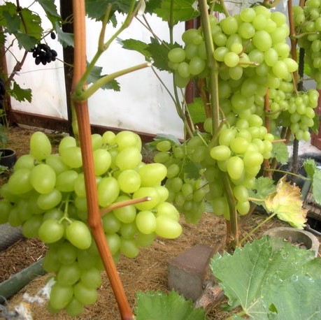 Столовая форма винограда раннего срока созревания 110-115 дней. Кусты средней силы роста. Цветок обоеполый. Грозди крупные и очень крупные, массой 700- 1200 г, отдельно до 2 кг. Масса ягоды 8-12 г и более, продолговатые, при созревании с легким мускатным ароматом. Отдельные кусты дают урожай по 34-40 кг. Вызревание побегов хорошее, окореняемость черенков высокая, однолетние саженцы с хорошим приростом и отличной корневой системой. Сорт устойчив к милдью, оидиуму и серой гнили. Товарность и транспортабельность хорошие. Морозоустойчивость Надежды Аксайской -23.. -24 °С.