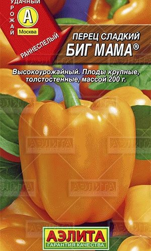 Раннеспелый сорт, рекомендован для выращивания в открытом грунте и под пленочными укрытиями. Плоды крупные, массой до 200 г, прямоугольные, гладкие, толстостенные (6-8 мм), с очень привлекательной оранжевой окраской. Вкусовые качества отличные. Сорт идеален для использования в свежем виде, в кулинарии и для консервирования.