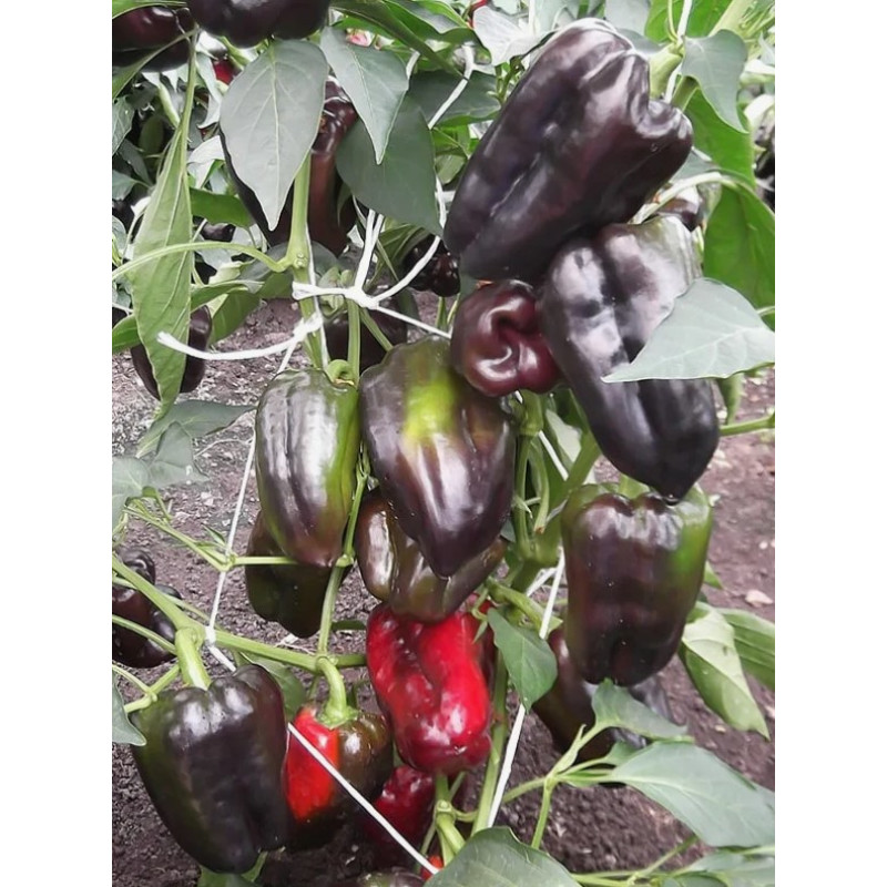 Коллекционный раннеспелый сорт для открытого грунта и теплиц). Высота в открытом грунте до 50см, в теплице до 85см.Декоративен на всех стадиях роста: цветочки и листья с фиолетовым оттенком. Куст компактный. Плоды конусовидной формы, слегка приплюснутые; в технической спелости черного цвета(все смотрят вверх). В зрелом виде — цвет черной черешни. Длина перцев 6-7см, толщина стенки 5-6мм, весом 40-60г. Сочные, хрустящие, сладкие со свежей ноткой кислинки и насыщенным ароматом. Очень вкусен в свежем виде, пригоден для цельноплодного консервирования и в кулинарии.