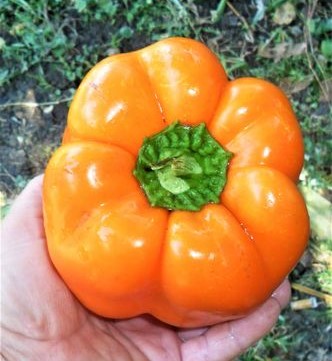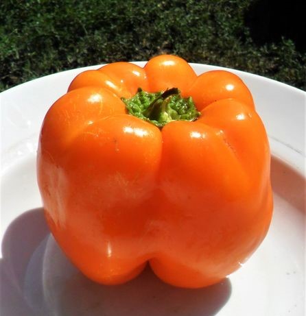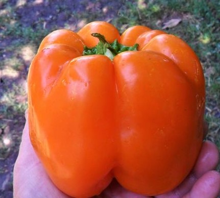 Сорт Orange Bell включен в SSE США в 1989 году, как коммерческий. Его ценят за крупные плоды и высокую урожайность. Созревание наступает через 120 дней. Куст вытягивается в высоту на 1 м. Плоды крупные, до 10 см в длину и 6–7 в диаметре, с толстыми, мясистыми, сочными стенками. Плоды имеют кубовидную форму, 4-6 ребра и толщину стенок до 13 мм. Средняя масса перцев 200-250 гр. Мякоть очень сочная, хрустящая, сладкая и ароматная. В стадии технической спелости плод кремовый, по мере созревания становится сначала жёлтым, а затем ярко-оранжевым; на любой стадии обладает сильным ароматом. Сорт урожайный, устойчивый к болезням, низким температурам и малой освещенности.
