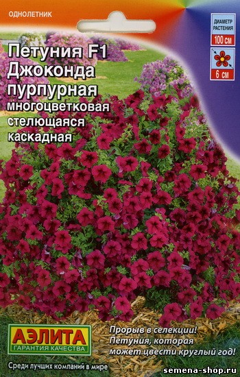 Совершенно новый тип петунии с уникальными характеристиками. Джоконда — первая в мире петуния, которая дает ошеломляющее количество цветков за счет мужской стерильности (не дает семян), что создает конкуренцию петуниям и сурфиниям, которые размножаются черенками. Растения с невероятно мощными ветвящимися побегами (покрывают почву до 1 метра в диаметре, при высоте 20 см), усыпаны огромным количеством цветков! При выращивании в горшках побеги каскадами спадают через края. Петуния Джоконда способна адаптироваться к широкому диапазону температур — от -8 до 400С. При понижении температуры растения не погибают, а только замедляют рост и цветение. Поддерживая оптимальные условия выращивания (11 часовой световой день и температуру 20-220С), можно сохранить растения цветущими круглый год, что дает новые возможности в декоративном озеленении. Петуния Джоконда идеально подходит для производства рассады в теплицах: растения однородные, очень крепкие, а главное, цветение начинается на ранней стадии. Идеальна для выращивания в горшках, подвесные корзинах и в открытом грунте.