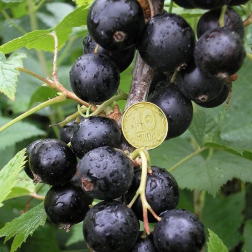 Ягоды очень крупные (1,6 г — 3,0 г), округлые, черные, с сухим отрывом, с большим количеством семян. Урожай на средний куст около 2,6 кг. Сорт зимостойкий, самоплодный, относительно устойчив к почковому клещу.»