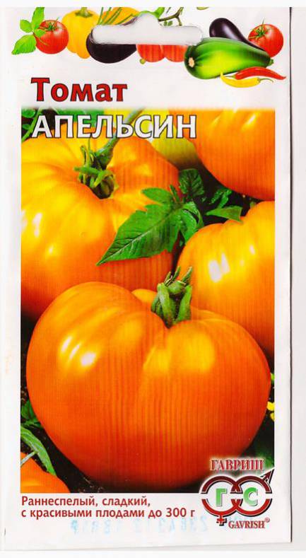 Раннеспелый (98-110 дней) высокорослый сорт для открытого грунта и пленочных укрытий. Плод округлый, гладкий, крупный, массой 180-300 г, мясистый, сладкий, с малым количеством семян, по цвету и форме напоминает апельсин. Ценность сорта: стабильная урожайность, выравненность плодов, высокие вкусовые и товарные качества. Рекомендуется для потребления в свежем виде, приготовления салатов и консервирования. Посев на рассаду — в конце февраля – начале марта. Пикировка — в фазе первого настоящего листа. Высадка рассады в теплицы — в конце апреля — начале мая. Обязательна подвязка растений через несколько дней после высадки. Формируют в один стебель, удаляя все «пасынки» и нижние листья, а также прищипывают точку роста в конце вегетации. Схема посадки: 40х60 см