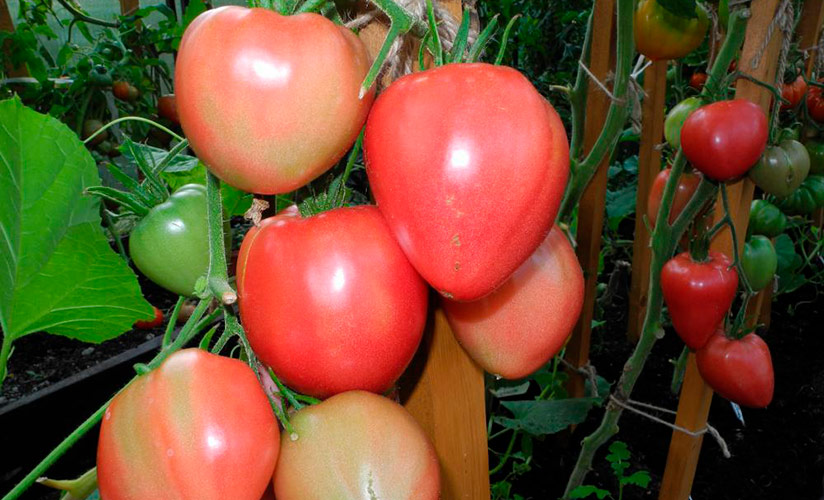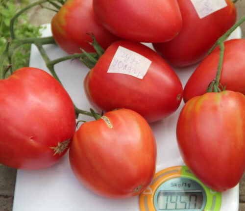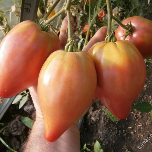Редкий кистевой среднеспелый сорт американской селекции с оригинальными вкусными розовыми плодами в виде вытянутых сердец. В теплице завязывает 10-12 кистей и ведется в 2 ствола, в открытом грунте вяжет 6-8 кистей с плодами массой 250-300г. Сорт очень вкусный и урожайный. Желательна подвязка, чтобы не сломался под тяжестью плодов.Урожайность более 6 кг. с куста!