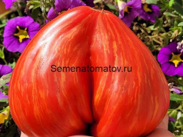 Среднеспелый, высокорослый, инд. сорт. Мощный, крепкий куст, не болеет, завязывает все плоды, даже при неблагоприятной погоде. Огромные, потрясающе красивые плоды, вытянутые сердца с длинным носиком, красно- оранжевые с золотыми лучами и разводами, сплошная мякоть, практически без семян.