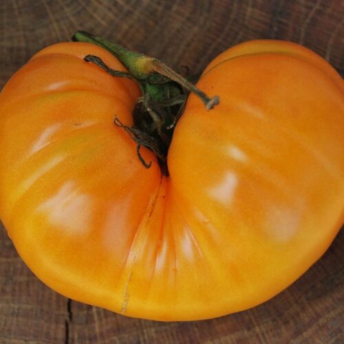 Высокорослый, среднеспелый сорт. Растение с картофельными листьями. Томаты-бифштексы массой 300-500г. Насыщенный горячий цвет плода, взрывной сладкий вкус с легкой кислинкой.