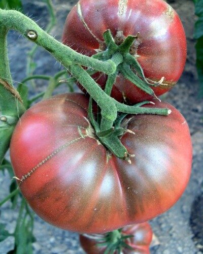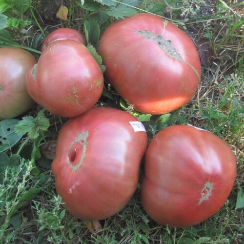 Оригинатор сорта Дан Гильмор. Высокорослый, урожайный, среднеранний сорт томата. Высокие мощные кусты усыпаны красивыми томатами плоско-округлой формы, розово-лилового цвета, массой 250-300г., очень вкусными, сочными и сладкими.