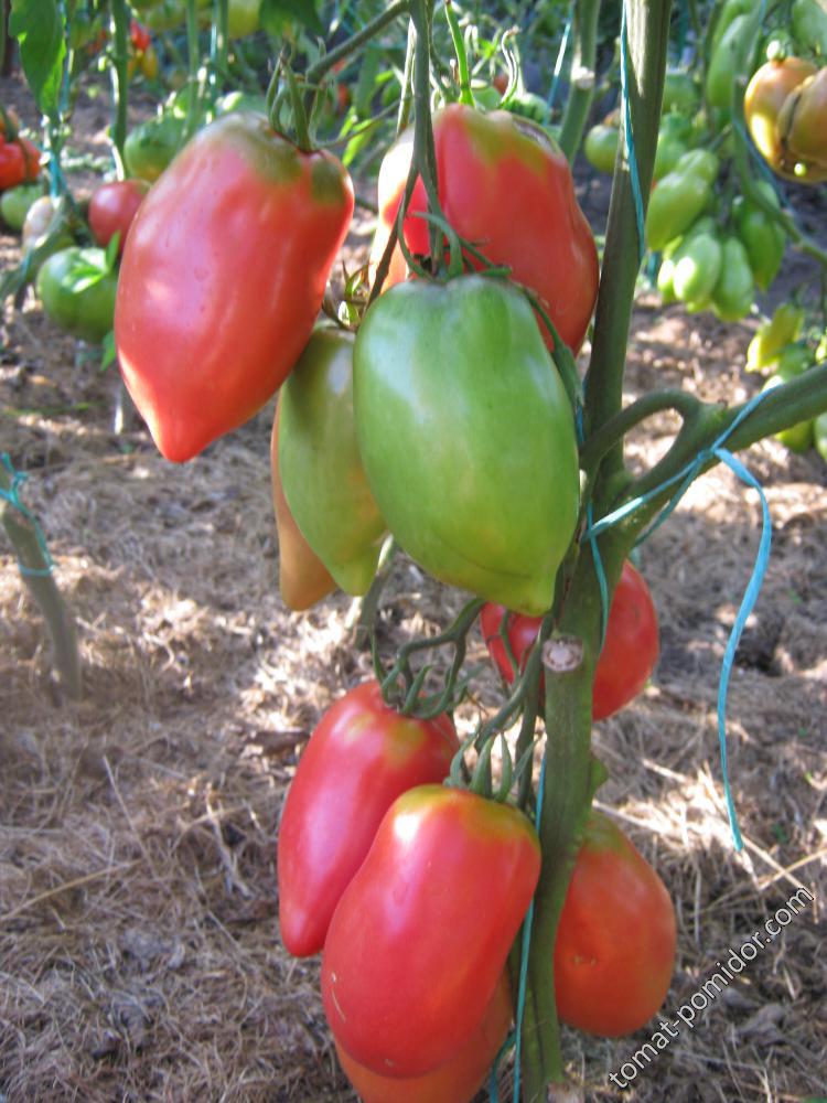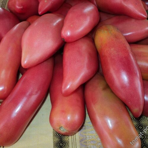 Высокорослый (до 2 м), среднеспелый сорт любительской селекции из Минусинска. Формируется в 1-2 стебля. Плоды удлиненные, розовые, массой 300-400 г, вытянутой формы с носиком, собраны в большие кисти. Томаты мясистые, сладкие! Очень урожайный сорт.