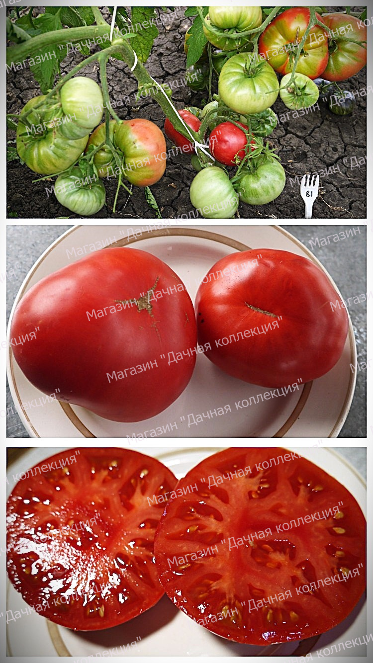 Детерминантный средне-ранний урожайный розовоплодный биф-томат, с крупными красивыми перламутрово розовыми плодами, средней массой 350-550г. Томаты созревают через 108-115 дней после появления всходов. Мякоть на разломе сахарная, малосемянная, нежная и очень сладкая. Дает высокие урожаи вкусных плодов в теплице и открытом грунте. При нормировании числа завязей вес плодов достигает 950 г
