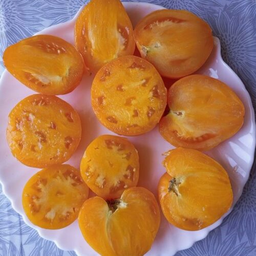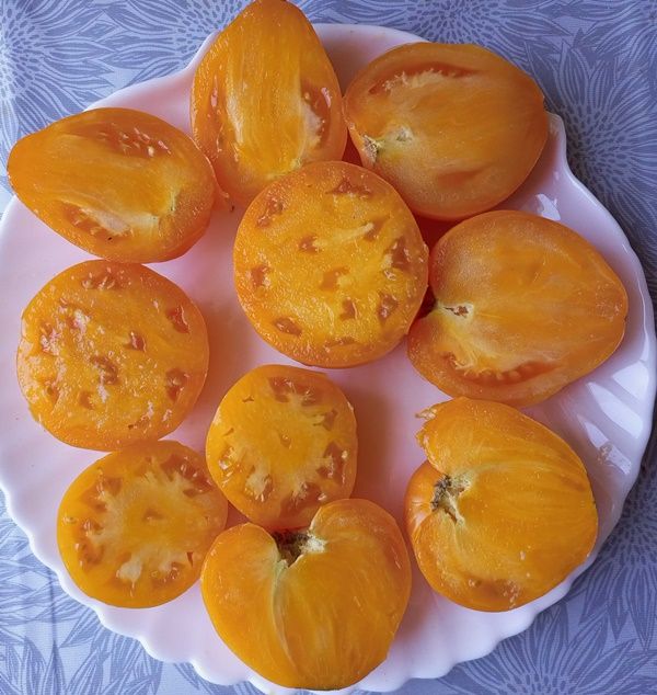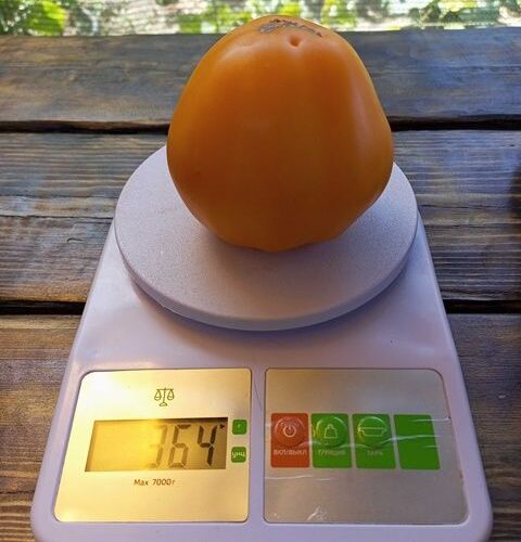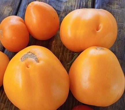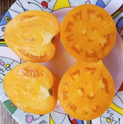 Первые плоды созревают уже на 63 день после пересадки в грунт. Оранжевые сердцевидные плоды, массой 300-500г и больше. Очень мясистые, с небольшими семенными полостями, и очень мало семян. Плоды созревают на удивление рано и имеют хорошую, богатую, вкусную и мясистую текстуру. Ароматные плоды отлично подходят для салатов и бутербродов.