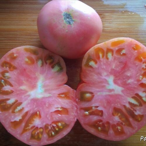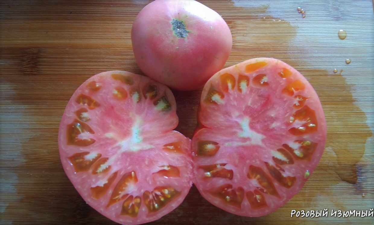 Плоды красивые круглые, от 200 г, розово-перламутровые, вкусные, сочные. ИХ — ИЗОБИЛИЕ!!! Помидоры сочно-мясистые . вкусные, помидорного вкуса, без пятен и прожилок. Подходит для сложных условий выращивания. Урожаен и в теплице, и в ОГ .