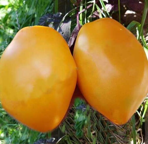 Высокорослый, средне-ранний. Плоды крупные оранжевые удлиненные сливы, масса от 100 до 300 гр., очень мясистые, сладкие, мякоть сахарная. Урожайность высокая. Сорт народной селекции из Минусинска. Для теплицы и ОГ.
