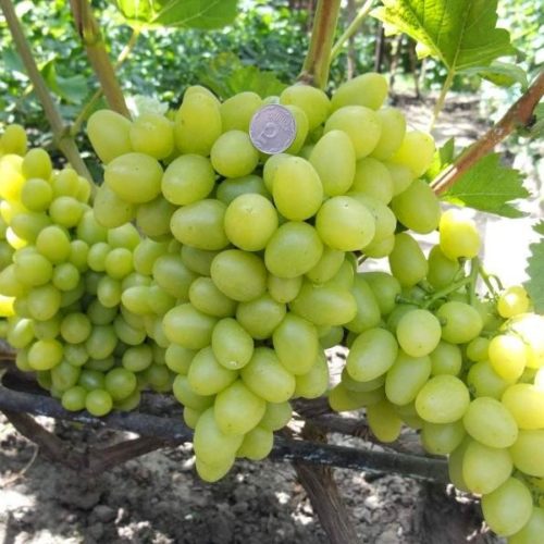 Столовый сорт винограда. Грозди крупные и очень крупные, 500-700 г (лучшие до 2 кг), цилиндроконические, с лопастями, чаще плотные. Ягоды крупные и очень крупные, 7-15 г, в зависимости от нагрузки куста и агротехники, яйцевидной (сердцевидной) формы, белые. Мякоть мясисто-сочная, кожица прочная, но не толстая — транспортабельность высокая. Урожайность очень высокая.