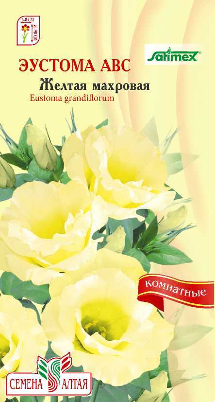 Эустома, лизиантус, «ирландская роза» — вот неполный перечень названий этого прекрасного однолетника, который в домашних условиях выращивается как многолетник. Полураспустившиеся цветки похожи на бутоны роз. Стебли высотой до 115 см с крупными махровыми цветками нежно-желтой окраски. Займет достойное место среди Ваших комнатных растений, также ее широко используют для оформления клумб, рабаток, бордюров и для получения первоклассной срезки.