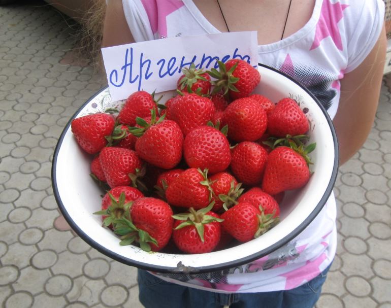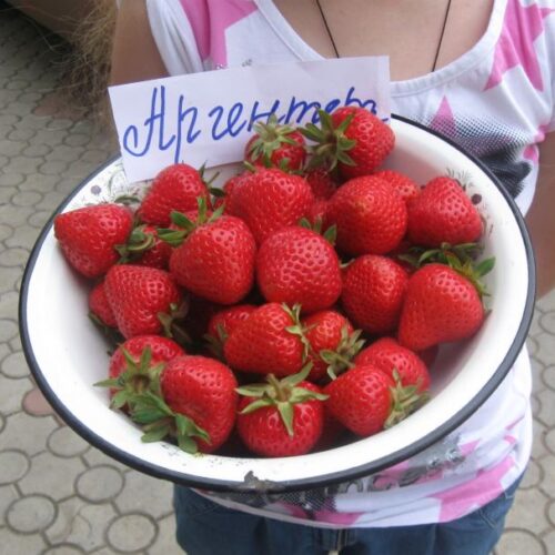 Высокоурожайный, зимостойкий сорт среднепозднего плодоношения с крупными ягодами необычного оранжево-алого оттенка. Плоды крупные(30-40г), сладкие, с ярким ароматом, правильной конической формы, практически однородны по размеру на протяжении всего плодоношения. Сорт нетребователен к качеству почвы, имеет хорошую адаптационную способность. Аргентера отличается высокой урожайностью и хорошей транспортабельностью: плотные ягоды не мнутся, не текут при хранении и перевозке. Ягоды отлично подходят для глубокого замораживания на зиму — после разморозки они сохраняют форму и отменный вкус. Мощные и раскидистые кусты Аргентеры имеют густую листву и длинные цветоносы, которые склоняются под тяжестью плодов. Отличительной чертой можно назвать розово-оранжевый цвет, который становится более алым у очень спелых ягод.