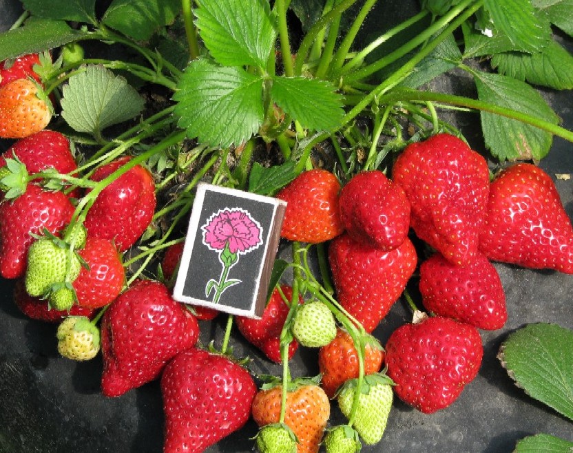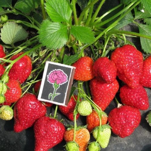 Ягоды продолговатой правильной формы, красные и блестящие, плотные , транспортабельные. Мякоть душистая, ярко-розовая, сочная, с земляничным ароматом. Вес колеблется до 50 гр, плоды плотные и транспортабельные.