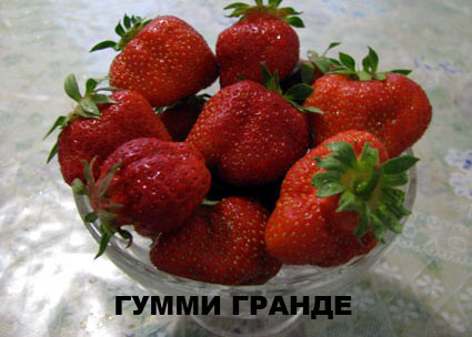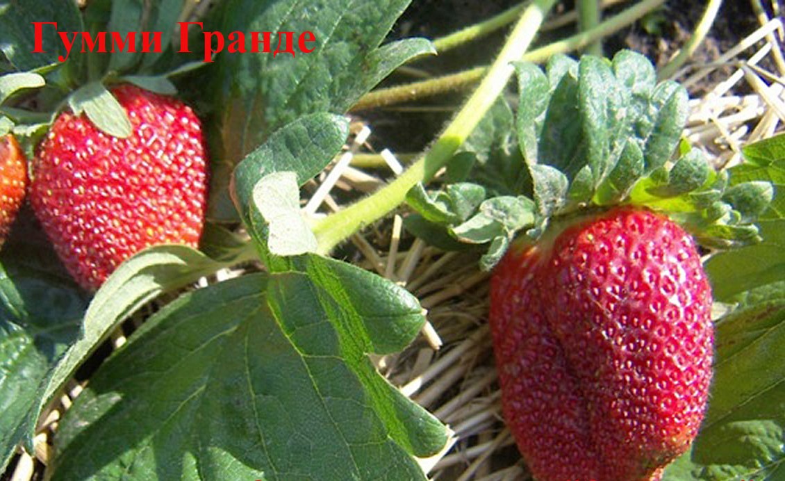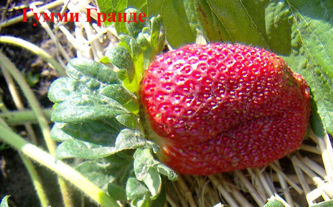 Гумми Гранде — новый голландский сорт. Пользуется особым вниманием садоводов-любителей за необычно крупные ягоды (до 80 г) и высокую урожайность. Обладает отличной транспортабельностью. Образует мало усов. Ягоды у Гумми Гранде красивой удлиненной цилиндрической формы, ярко-красные, плотные, отличного сладкого вкуса, с выраженным ароматом.