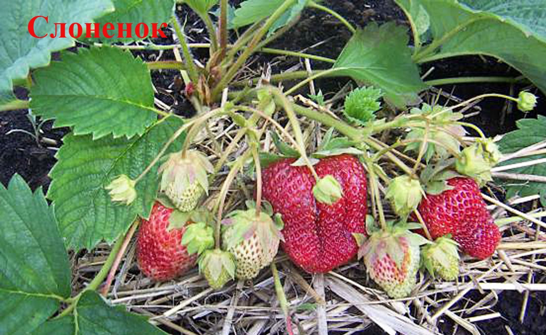 Чуть позже Даренки созревает сорт Слоненок, созданный в НИИ садоводства Сибири. Он среднераннего срока созревания. Ягоды очень крупные (до 60 г), темно-красные, блестящие. Мякоть нежная, красного цвета, приятного сладкого вкуса. Отличается сибирской зимостойкостью и урожайностью. Слабо поражается болезнями и вредителями.
