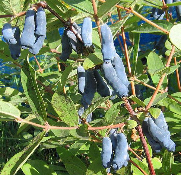 Один из самых крупноплодных среднеспелых сортов. Куст невысокий (1,5-1,7м) весь усыпан огромными вкусными ягодами массой до 3-х г и длиной до 3-х см!Плоды слегка бугристой формы, сладкие, с небольшой кислинкой и совершенно без горечи.Сорт Нимфа поспевает в начале июня и способен сохранять ягоды на ветках даже после полного созревания.Урожайность очень высокая – более 2,5 кг. с куста. Сорт зимостойкий и устойчивый к болезням.Самобесплодный, как и все сорта жимолости съедобный . Лучше высаживать по 2-3 растения одного срока созревания.